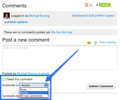 IntenseDebate is feature packed and we’re always adding new bells and whistles. Of course, you know this by now and are likely pretty familiar with our tools. Still there might be some cool features that you never knew existed. We’re guessing that you’re familiar with our email notifications, but there’s one method of subscribing to comments that might be overlooked (I know this because I recently forgot it existed).  This post outlines three methods for commenters to opt to receive email notifications for comments posted.